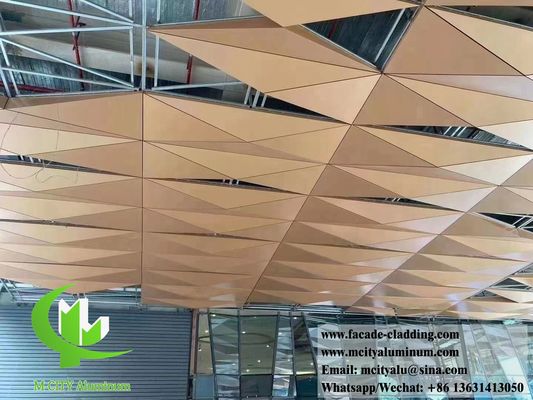 Hochwertige 3D-geformte PVDF-goldene Aluminiumkacheln, konzipiert für architektonische Anwendungen im Außen- und Innenbereich, die außergewöhnliche Haltbarkeit und ästhetische Anziehungskraft bieten.
