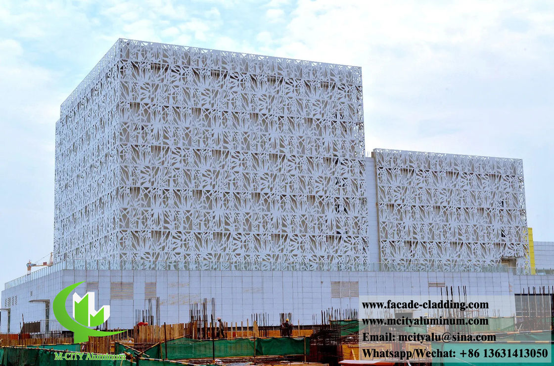 Professionelle perforierte Fassadensysteme aus Metall mit individuellen Mustern und langlebiger weißer Pulverbeschichtung für architektonische Anwendungen.