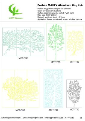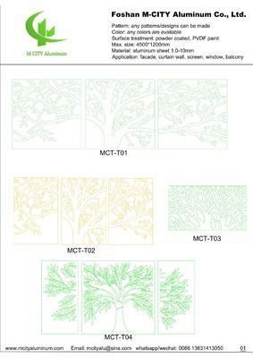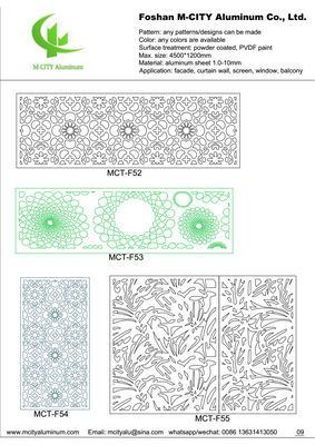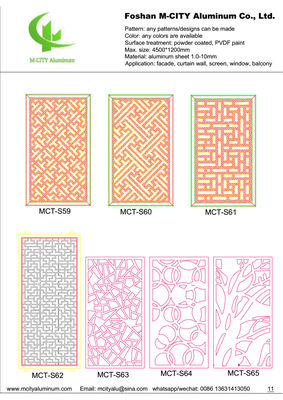 Aluminium-Hohlplatten sind ideal für Fassaden-, Zaun-, Vordach-, Decken-, Sichtschutz- und Fensteranwendungen. Wählen Sie Muster aus unserem Katalog oder stellen Sie Ihre eigenen Zeichnungen oder Bilder bereit - wir können kundenspezifische Designs für Ihre spezifischen Anforderungen erstellen.